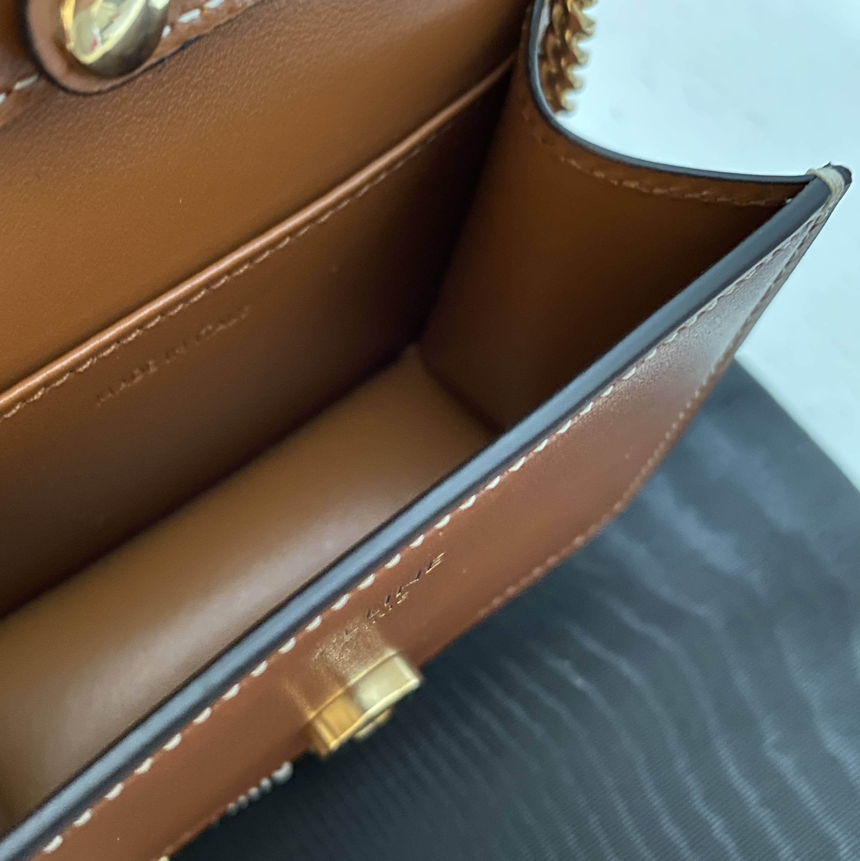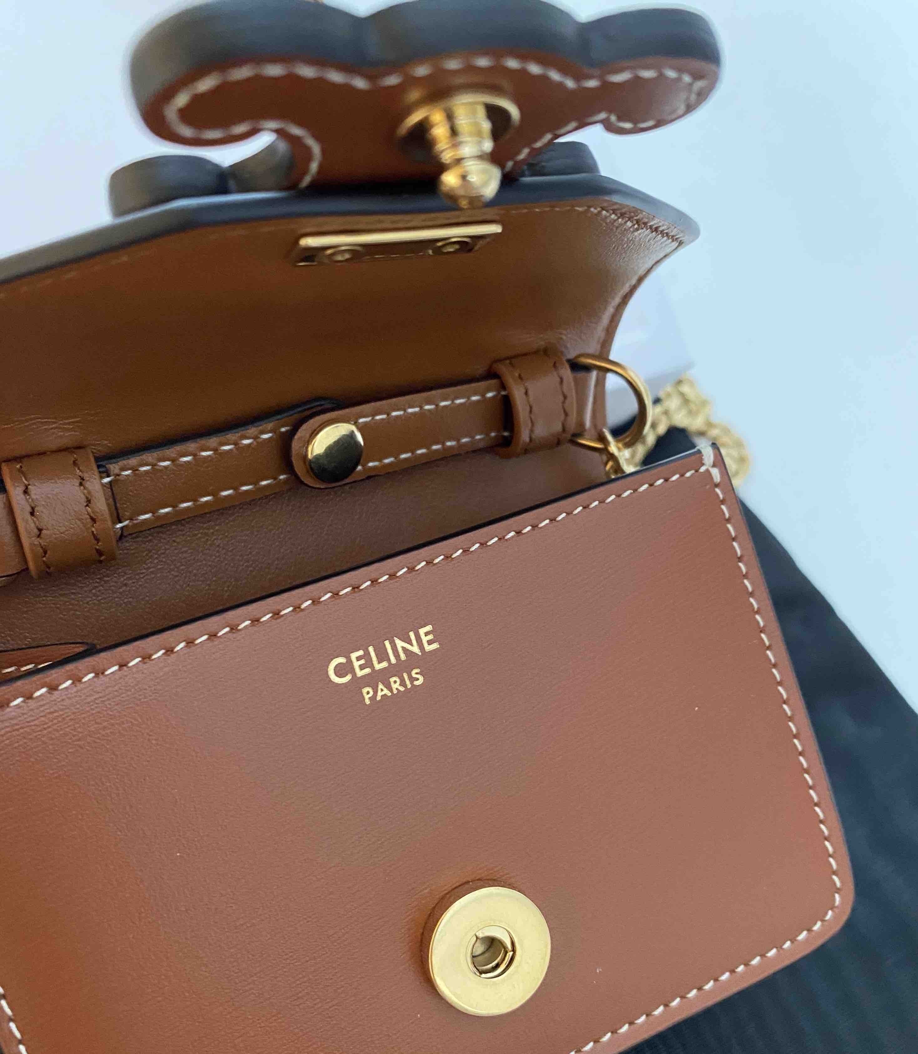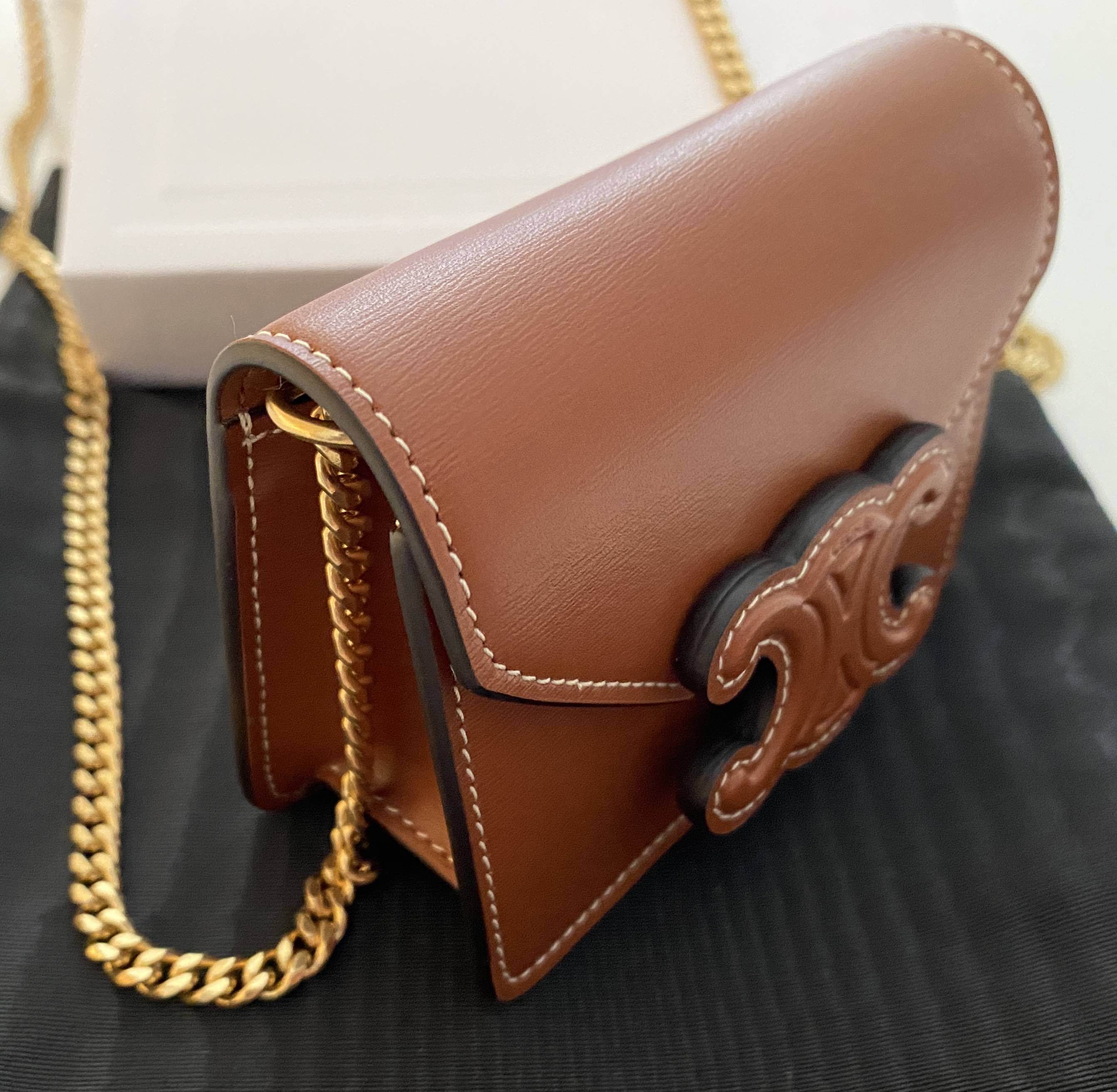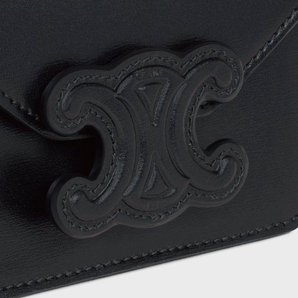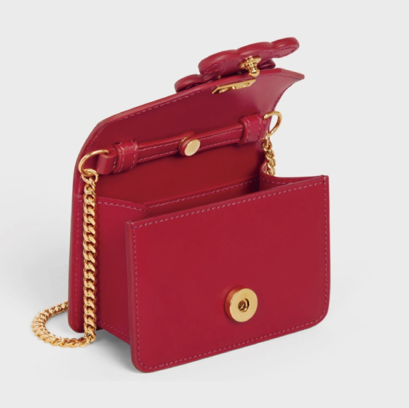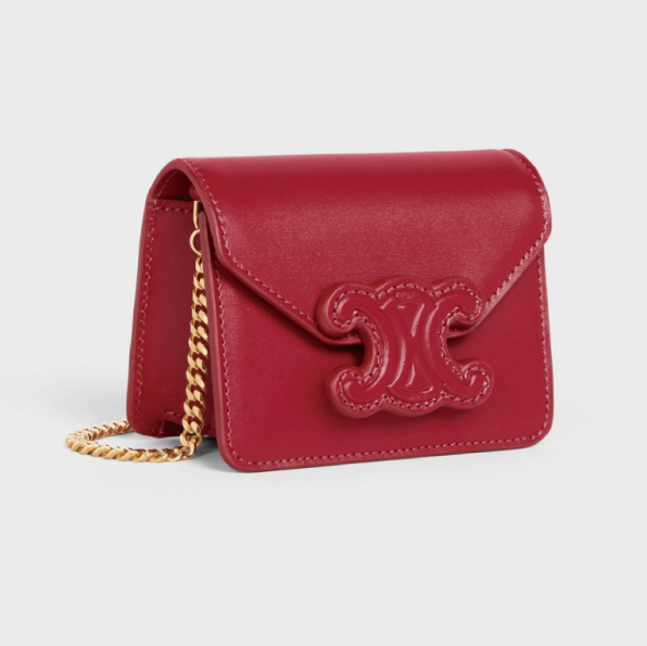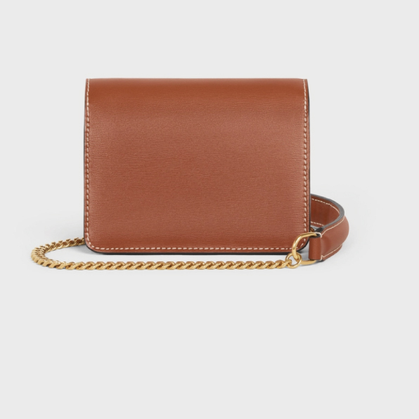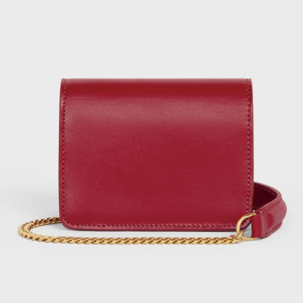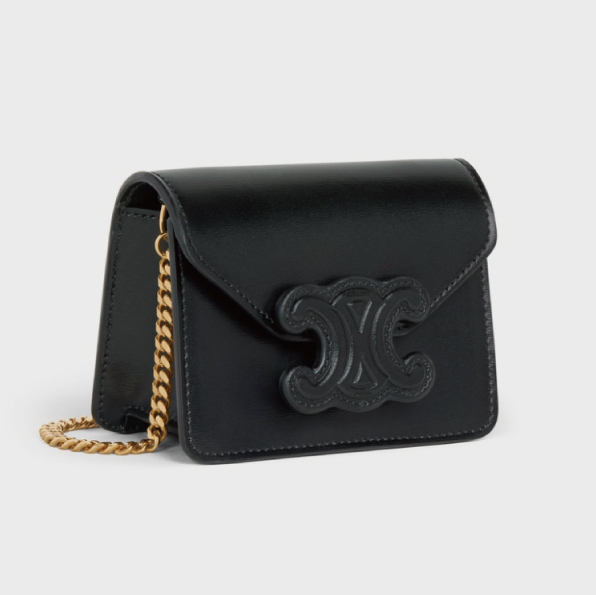 ☆【CELINE】(セリーヌ)CARD HOLDER ON CHAIN TRIOMPHE チェーンショルダー☆モダンでスタイリッシュなトリオンフロゴ。ミニの可愛さと機能的な収納デザイン。
