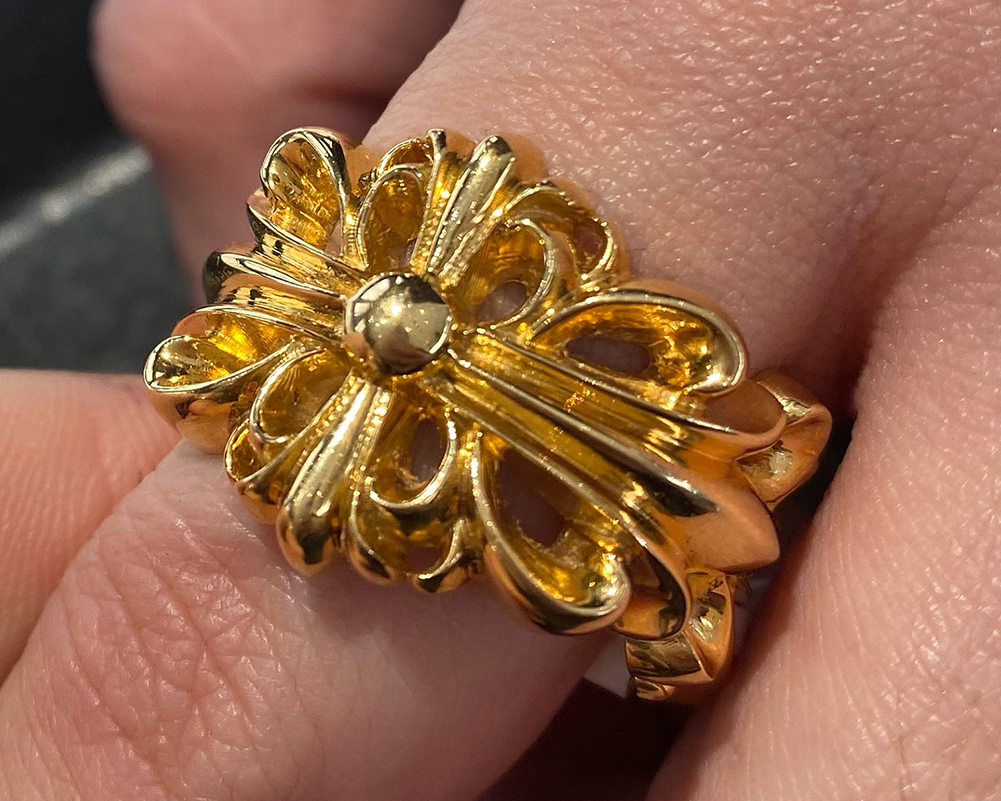 クロムハ-ツを代表するリング、クロスモチ-フとフロ-ラルモチ-フとの 融合作品です。