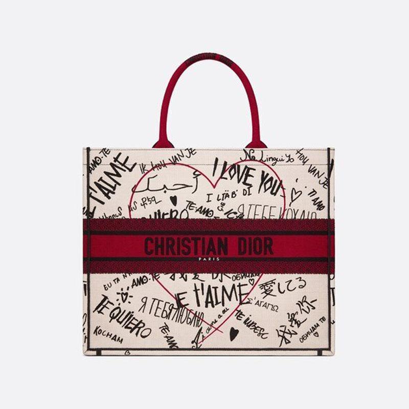 このBook Toteのハンドバックはアイデアディレクターのマリア·カーシア·ココアからインスピレーションを受け、ディオールの審美を表現する主力商品です。大きいサイズのデザインはディオール限定シリーズから来ています。デザインが精巧で、日常用品の理想の選択を携帯しています。正面の装飾は「CD」マークで、全体の刺繍はCDの落書き模様があります。38種類の言語で「愛しています」を表現します。このハンドバックはCDの優れた技術を十分に表しています。