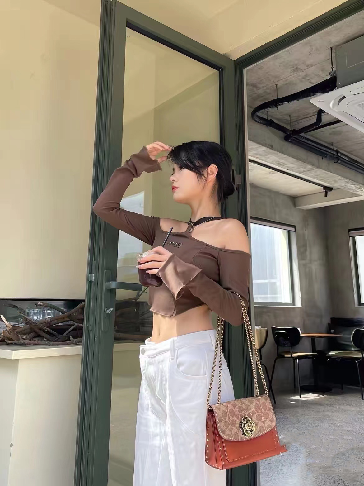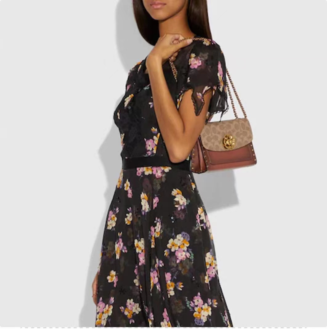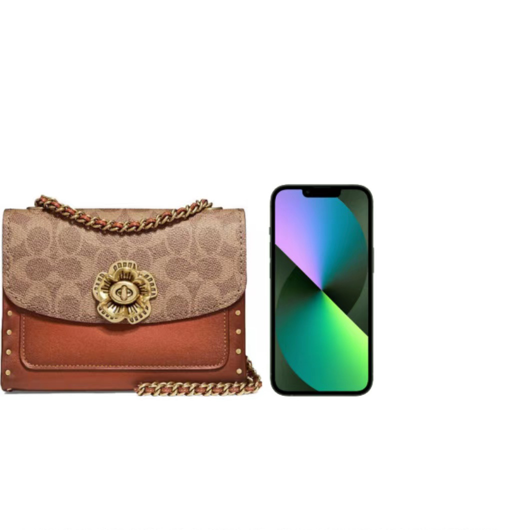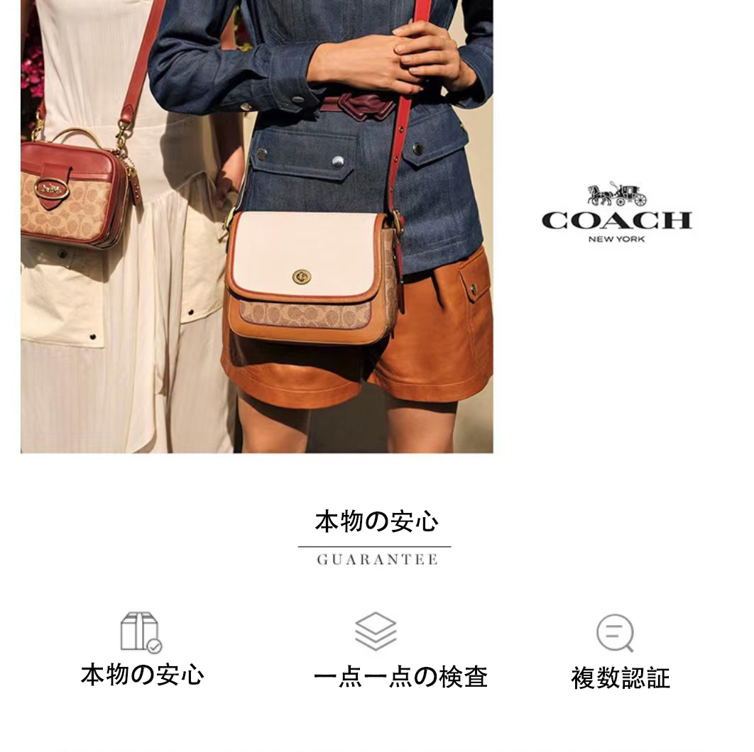 COACHクリッツパーカーシリーズ18リベットツバキ チェーンカバーキャンバスに皮付きショルダーバッグトランペット女性カーキに茶色の老花