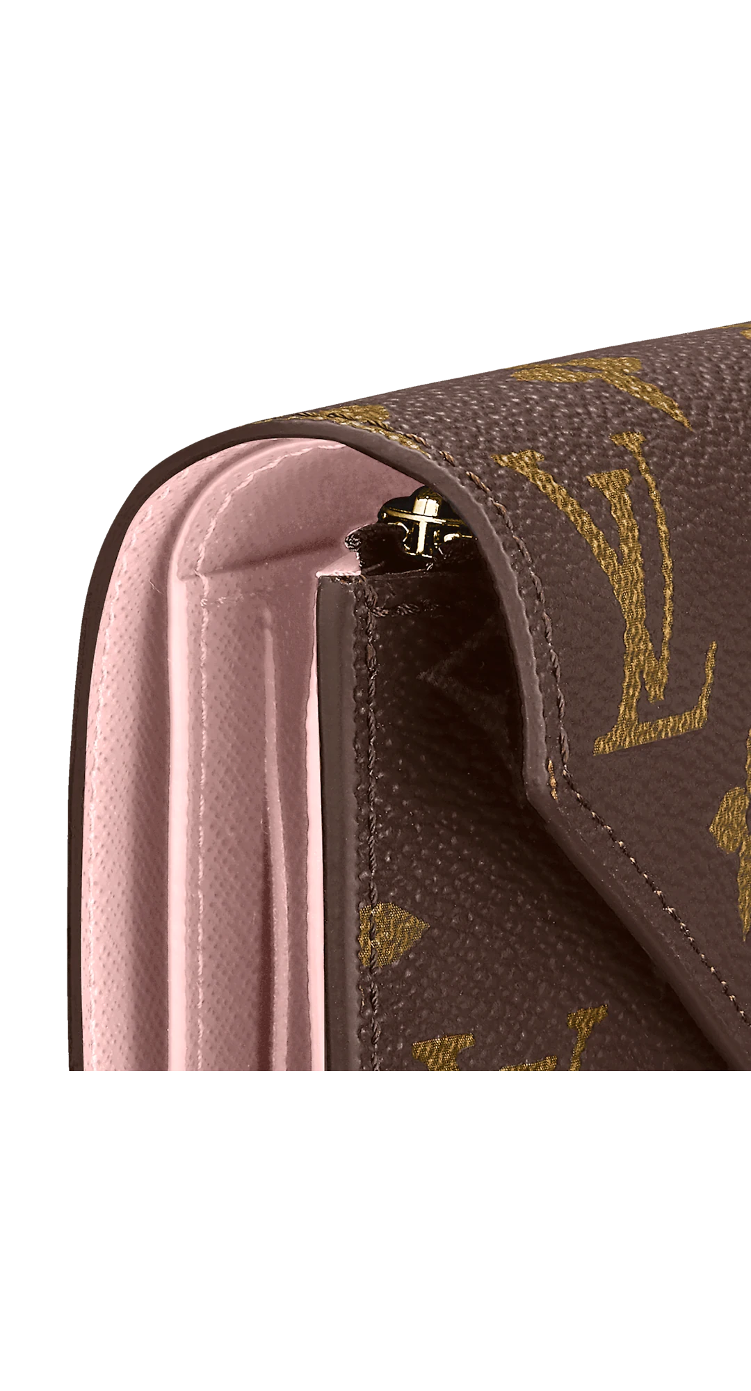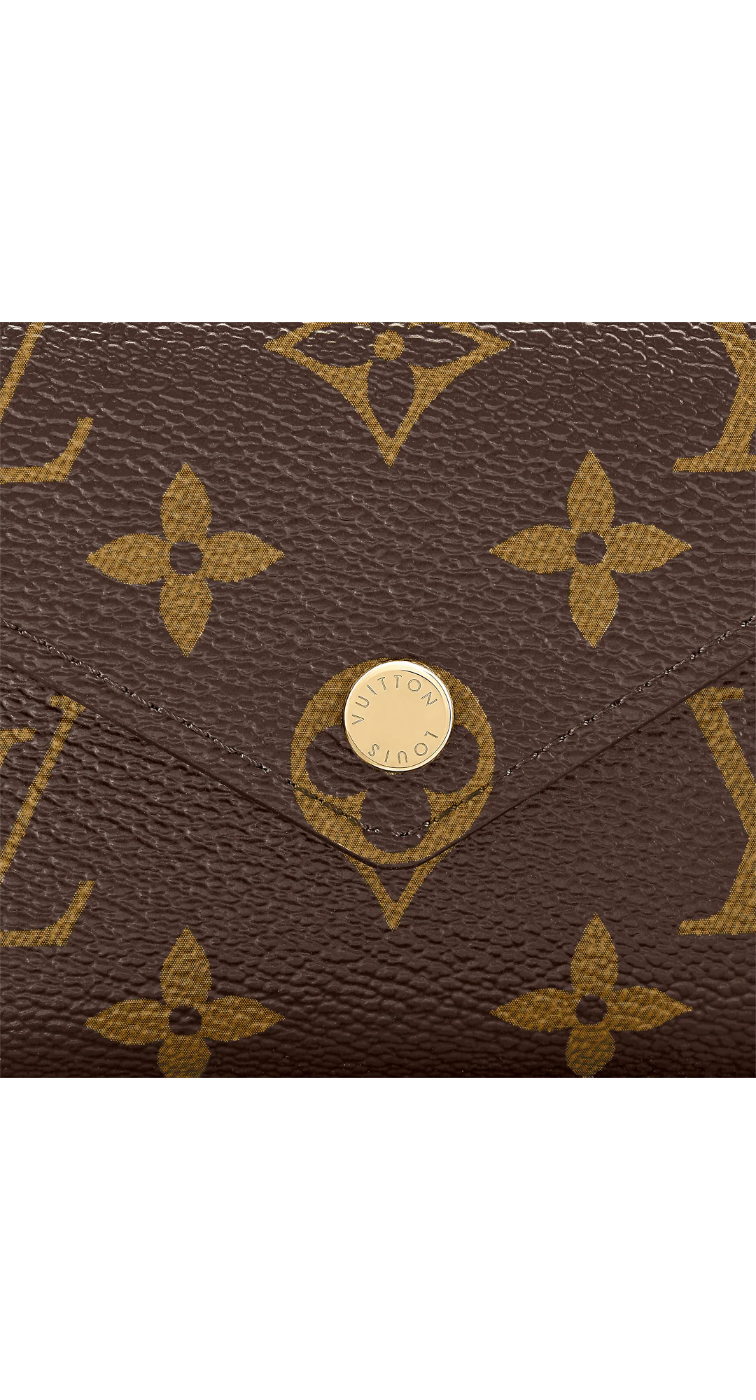 フェミニンな雰囲気と機能美が光る、モノグラム・キャンバスでコンパクトに仕上げた「ポルトフォイユ・ヴィクトリーヌ」。内装にはカードスロット、紙幣とコイン用のポケットを備えています。グレインレザーのライニングでアクセントを添え、エンヴェロップ型のフラップにはスナップをあしらいました。